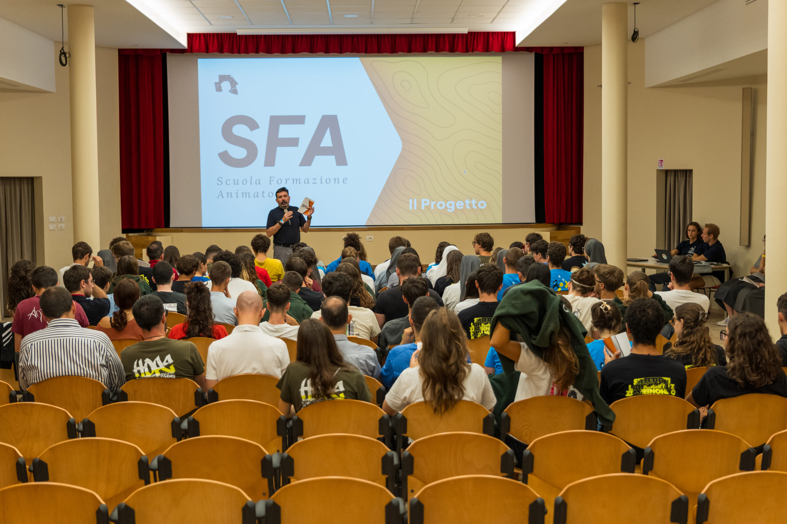 Sabato 13 settembre, dopo un primo momento di accoglienza in cortile, i Formatori della SFA e i giovani del MGS si sono riuniti nel Teatro SALES dove suor Gisella Ciarla e don Edoardo Gnocchini hanno presentato il programma della nuova Scuola Formazione Animatori.