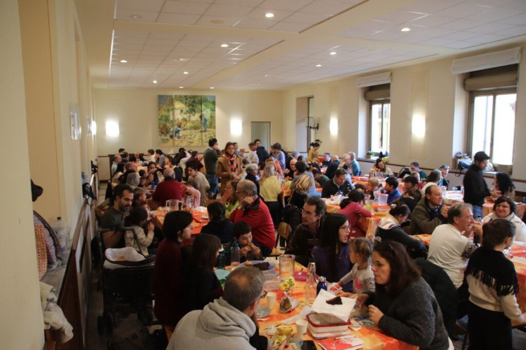 “DUE BAGAGLI IN UN ARMADIO: la coppia e la relazione con le famiglie di origine”. Si intitola così la prima tappa della proposta di animazione familiare “I virus della coppia” organizzata per l’anno 2025/26 dal Settore Famiglia dall’Associazione dei Salesiani Cooperatori accompagnati dai Salesiani Don Bosco dell’Ispettoria Lombardo-Emiliana e dalle FMA dell’Ispettoria Lombarda, impegnati nelle attività di sensibilizzazione delle famiglie su temi cari alla coppia e mai banali. La prima giornata del 9 novembre si è svolta presso l’Istituto Salesiano Paolo VI di Nave (BS) ed è stata incentrata sulle relazioni che la coppia ha con la propria famiglia d’origine, come si intuisce già dal volantino che vede due bagagli che vengono portati verso quell’unico armadio che andranno a condividere nella propria casa. Stupisce sin dal primo momento come questa atmosfera familiare si respiri a pieni polmoni e, passando dai sorrisi accoglienti dei Salesiani Cooperatori e di tutti i partecipanti, arrivi dritta al cuore. Immediatamente ci si sente scaldati come in una coccola, non solo dal buon odore di caffè appena preparato o dalle torte e dai dolcetti portati in condivisione che accolgono gli ospiti deliziandoli con qualche chiacchiera conoscitiva e di presentazione, ma perché tutti sono coinvolti nell’accoglienza, persino i piccoli che vengono subito chiamati a giocare. Siamo circa 180 persone e tutti sono partecipi perché si sentono parte di una grande famiglia di famiglie che, come ci ripetono spesso questi amici, è la loro affascinate missione. Questa usuale accoglienza calorosa ed accurata si riflette in tutte le scelte, dalle proposte delle tematiche da affrontare, al pranzo condiviso, all’animazione dedicata ai bambini e ai ragazzi di ogni età. Ogni dettaglio è pensato e studiato, senza però che questa cura sia un ossessivo bisogno di perfezionismo, ma sia il conseguente scaturire dall’amore e dall’attenzione che i genitori hanno per i loro figli.