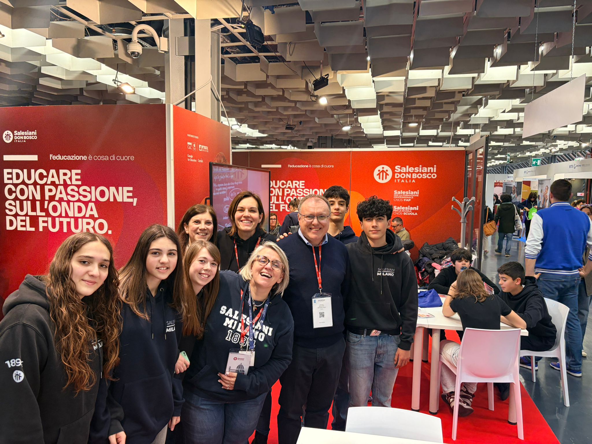 Uno Stand Dinamico e Numeri da Record All’interno della fiera, lo stand salesiano di 48mq, posizionato al piano attico, ha attirato una vasta affluenza. I risultati sono stati eccellenti: più di 1200 visitatori si sono fermati allo stand e quasi 500 hanno interagito direttamente con lo staff per richiedere informazioni o ritirare materiale promozionale, come gift bag, volantini e cataloghi. .L’approccio scelto è stato estremamente dinamico: ogni giorno lo stand si è animato con l’alternanza di docenti e studenti provenienti da vari istituti italiani (tra cui scuole di Brescia, Milano, Chiari, Treviglio e Parma), i quali hanno raccontato le proprie esperienze dirette sull’uso delle nuove tecnologie negli ambienti di apprendimento..