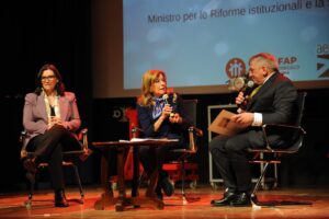 Gli allievi hanno poi partecipato, nella “Sala San Luigi” all’incontro dal titolo “Semplice e trasparente” nel quale hanno potuto mettersi in dialogo con la ministra moderati da Sergio Barberio, direttore del Centro di formazione professionale.